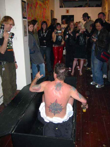 Various Crap featured Dave Brockie's own brand of artwork in the form of him delving into his isochamber that he would remain in for 6 months (hence the diapers). Also appearing that night was the infamous Chippy, where he performed lounge songs, decimated a replica of the World Trade Center, and was subsequently kept in-line by a crazed Ranger and his cattle prod.